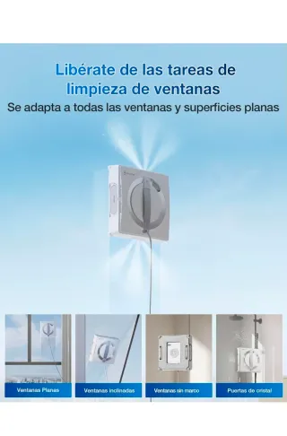 Robot automático para la limpieza de ventanas. Diseñado para facilitar la tarea de mantener tus cristales relucientes. - Limpieza inteligente y automática. - Tres modos de funcionamiento. - Movimiento de limpieza arriba y abajo.