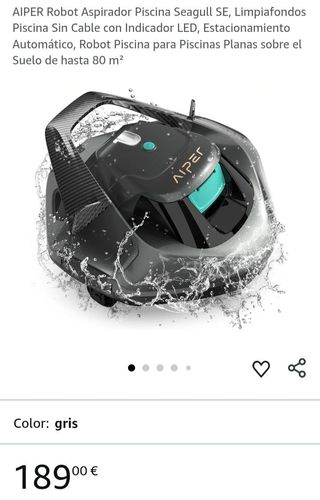 AIPER Robot Aspirador Piscina Seagull SE, Limpiafondos Piscina Sin Cable con Indicador LED, Estacionamiento Automático, Robot Piscina para Piscinas Planas sobre el Suelo de hasta 80 m² Marca AIPER Nombre del modelo ZT2002 Material Plástico Colorgris Fuente de alimentación Peso del producto 3,4 Kilogramos