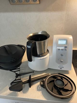 Robot de cocina Mycook puedes elaborar infinidad de platos, ya que realiza varias funciones: moler, pulverizar, rallar, picar, triturar, trocear, emulsionar, montar, amasar, guisar, sofreír, cocer a vapor, función turbo para texturas más fácil y pesar. En buen estado.