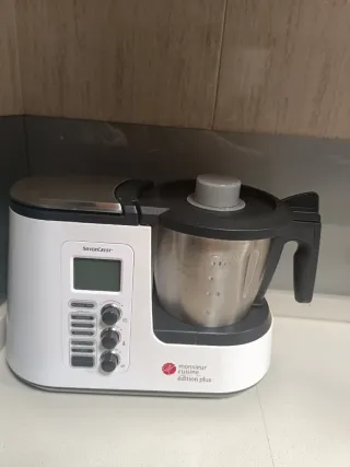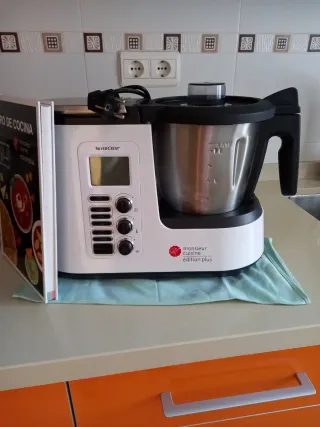 Se vende Monsieur Cousine, el robot de cocina de Lidl. Funciona perfectamente, lo vendo por no tener tiempo para usarle.Le habré utilizado 4 veces contadas. Incluye los accesorios, mucho de los cuales están totalmente nuevos en su bolsa. Incluye su caja original. Lo unico que tiene es un pequeño desperfecto estético que a penas se aprecia, en un lateral, que no afecta en ningún caso a su funcionamiento . (adjunto foto).