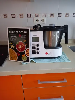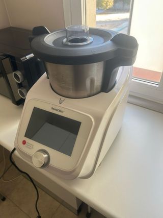 Robot de cocina Taurus Mycook One usado dos veces, lo compró mi hermano en Octubre de 2023 y al final come todos los días fuera, con todos los acccesorios originales: (Vaso dosificador, tapa jarra, junta tapa, cestillo-colador, cuchillas de acero inox, jarra 2L, soporte jarra con brida de fijacion, unidad central, mango para cestillo, paleta mezcladora, bandeja vapor, tapa, bandeja plastico, junta vaporera) Funciona perfectamente, viene con el libro oficial para aprender a usar la mycook y con muchísimas recetas, es muy intuitiva y facil de usar, HACE DE TODO, unidad central de color blanco.