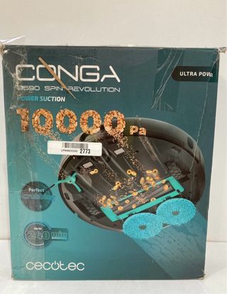 Robot aspirador Cecotec Conga 9590 Spin Revolution con alta potencia de succión. - Potencia de succión de 10000 Pa. - Tecnología Spin Revolution para un fregado avanzado. - Autonomía de hasta 240 minutos.