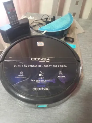Robot aspirador Conga 1090 prácticamente nuevo. - Incluye todos los accesorios que se ven en las fotos. - Funciones de aspiración y fregado. - Diseño moderno y elegante.