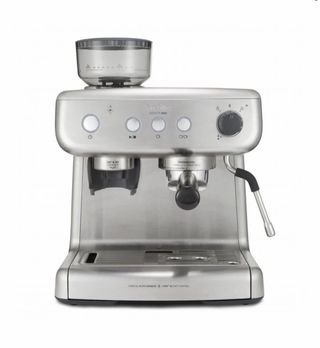 La cafetera está perfecta, pero hace unos días haciendo la descalificación se averió la rueda negra que se ve en la foto. - Molinillo cónico integrado. - Panel de control con botones. - Vaporizador para leche. - Está perfecta, pero a veces gotea un poco. -Jarra de acero inoxidable y porta filtro con dos filtros