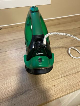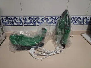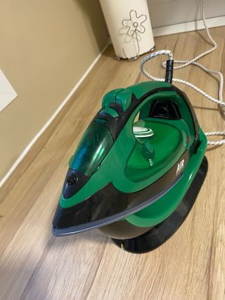 Plancha de vapor inalámbrica en color verde y negro. Diseñada para un planchado eficiente. - Base de carga incluida. - Depósito de agua transparente.
