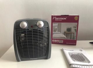 Calefactor Bestron Winter Warm en color gris. Incluye su caja original y manual de instrucciones. - Diseño compacto y moderno. - Dos niveles de potencia. - Termostato regulable.