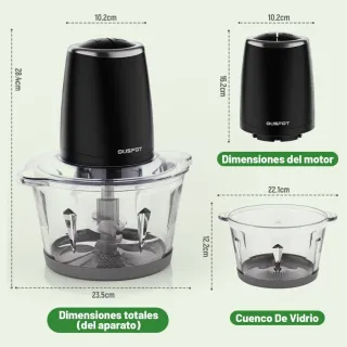 Picadora eléctrica OUSFOT con capacidad de 2 litros. Ideal para triturar alimentos. - Diseño moderno en color negro. - Bol de plástico transparente. - Incluye cuchillas de acero inoxidable. OUSFOT Picadora Electrica, 2L Trituradora de Alimentos 500W Picadora Con Bol de Cristal 2 Velocidades Apto para Verduras,Carnes,Fruta,Cocina