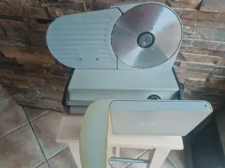 Cortafiambres eléctrico con cuchilla de acero inoxidable. - Diseño compacto y funcional. - Bandeja de corte. - Protector de cuchilla.