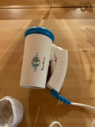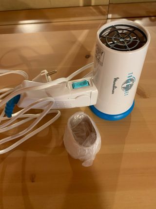 Práctico set de plancha y secador de viaje de la marca Moulinex, ideal para llevar contigo a cualquier destino. - Diseño compacto y plegable. - Color blanco con detalles en azul. - Incluye cable de alimentación. Sin estrenar. El pack 10€ por separado 6€ c/u No negociable.
