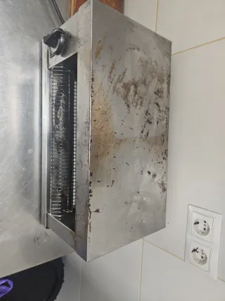 Tostadora industrial de acero inoxidable, ideal para negocios de hostelería. - Diseño robusto y duradero. - Superficie de fácil limpieza.
