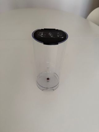 Depósito de agua transparente para cafeteras Krups Nespresso Essenza Mini apto para modelos XN 1101/ XN 1108/ XN 110 B. - Material: Plástico resistente. - Diseño: Cilindro transparente con tapa negra.