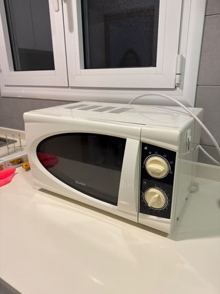 Microondas de color blanco de la marca Bluesky. - Diseño compacto. - Dos mandos giratorios para ajustar tiempo y potencia. A RECOGER EN MANRESA