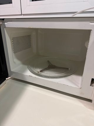 Microondas LG en color blanco.NO TIENE GRILL. FUNCIONA PERFECTAMENTE - Diseño compacto y funcional. - Panel de control con mandos giratorios.