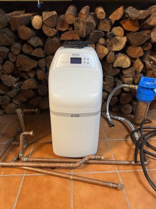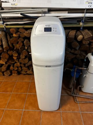 Descalcificador ERGO 15 en buen estado. - Modelo ERGO 15. - Color blanco. Descalcificador de agua marca ERGO, modelo 125 con pantalla LCD. - Diseño moderno y compacto. - Interfaz digital para configuración. Descalcificador Bajo Consumo Ergo LCD: Disfruta de agua blanda en tu hogar con un bajo consumo energético ¿Cansado de la cal en tu hogar? El Descalcificador Bajo Consumo Ergo LCD de MercaClima.es es la solución perfecta para ti. Este innovador equipo te permite disfrutar de agua blanda en toda tu casa, previniendo los problemas que la cal puede ocasionar en tus tuberías, electrodomésticos y piel. Además, su bajo consumo en