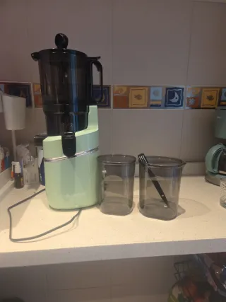 Extractor de zumo AMZCHEF en frio en color verde y negro. - Diseño moderno y compacto. - Incluye dos vasos. - Cable de alimentación.