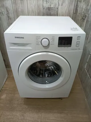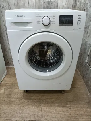 Lavadora de carga frontal Samsung en color blanco. - Capacidad de 7.0kg. - 1400rpm. - Panel de control con programas variados. - Diseño moderno y funcional. de altura 85cm. de ancho 60cm. clas energética A+++(bajo consumo) está en perfecto estado. funciona perfectamente. tiene 6 meses de garantía con la factura. transporte y instalacion gratuito en Barcelona. entrega en Mismo día al domicilio