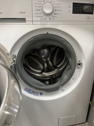 Lavadora de carga frontal Electrolux TIMECARE en color blanco. - Diseño moderno y funcional. - Panel de control intuitivo con selector de programas. - Puerta con apertura frontal. IMPORTANTE está dañada se ha caído el tambor