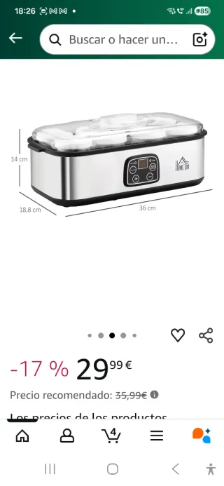Yogurtera marca Homcom con capacidad para 8 tarros de cristal. - Modelo: 25W. - Capacidad: 1,44L. - Incluye 8 tarros de cristal. - se puede regular temperatura y tiempo