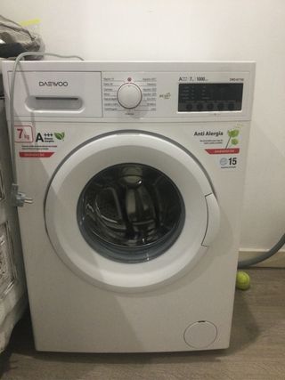 Lavadora Daewoo de carga frontal con capacidad de 7kg. Se encuentra en muy buen estado. - Modelo DWD-K7100. - Eficiencia energética A+++. - 15 programas de lavado. - Función Anti Alergia.
