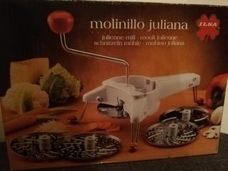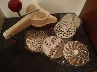 Molinillo manual - Rallador manual, corta en rodajas y en juliana, para ensaladas y sopas, incluye 5 discos de 120mm, color blanco