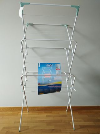 Tendedero torre AquaPur, nuevo. Ideal para secar la ropa de forma eficiente y cómoda. - Estructura de metal resistente y ligero. - 3 niveles para una gran capacidad de secado. - Plegable para facilitar su almacenamiento. - Fácil de montar y desmontar.