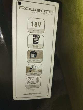 Aspiradora escoba Rowenta Air Force 18V, en buenas condiciones. - Sistema ciclónico. - Tecnología Delta Air Force. - Rotación de ángulo máximo. - Con su respectivo cable para cargarla. -Hasta 40 min de autonomía. - 18V.