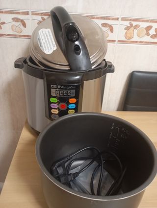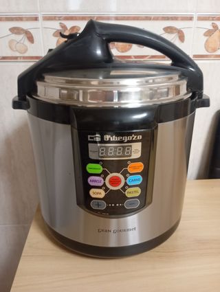 Olla programable Orbegozo Gran Gourmet, modelo HPE-6075. Es de acero inoxidable y tiene una capacidad de 6 litros. Incluye varias funciones preprogramadas como arroz, sopa, carne y pastel. Dispone de un panel digital para un manejo sencillo. Se encuentra en buen estado. -se uso una sola vez .