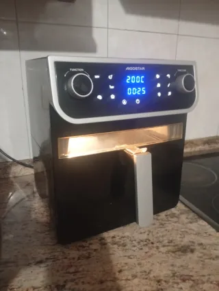 Freidora de aire con gran capacidad de 8 litros. - Diseño moderno en color negro. - Panel de control digital. - Asa ergonómica para extraer la cesta .Capacidad 8 Litros y de 1700 Vatios de potencia. -12 menús rápidos para cocinar de manera multifuncional, diseño innovador de doble perilla y pantalla táctil electrónica, control preciso de tiempo y temperatura. - Ventana transparente para comprobar el estado de cocción . - hace sonido al terminar la cocción para avisarte de que ha finalizado. -Dimensiones del producto32,7f. x 36,8an. x 41,2al. centímetros Poco uso .está como nueva