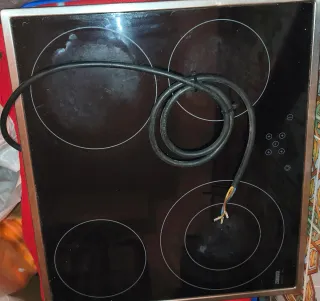 Vitrocerámica Teka de cuatro fuegos con superficie de cristal negro. - Diseño moderno y elegante. - Fácil de limpiar. Necesitas tener el horno con la botonera para poder usarla. Medidas 60 cm de ancho y 51 cm de alto.