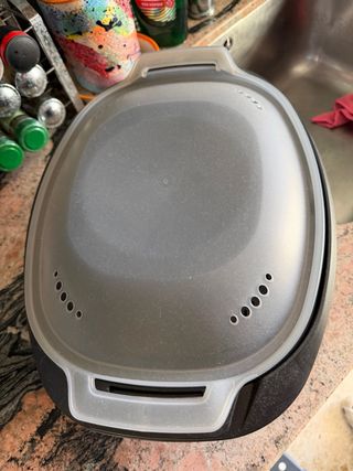 Vaporeta Cecotec Mambo. - Diseño ovalado. - Tapa de plástico translúcido. - Asa superior. - Orificios de ventilación.