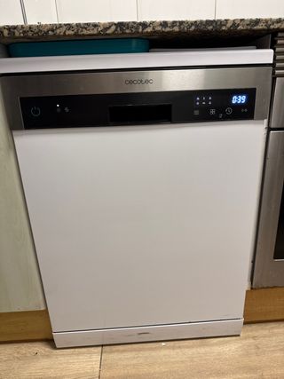 Lavavajillas de la marca Cecotec en color blanco. - Panel de control con pantalla digital. - Diseño moderno y elegante. - Tamaño normal 60cm Se ha usado dia veces esta comoletamebte nuevo, vendo por cambio de distribucion en la cocina por el momento no lo necesito. Oportunidad. Entrega en mano en Salou. No hago envios