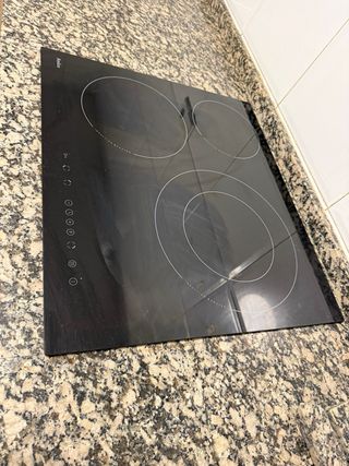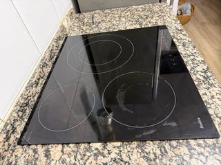 Placa de inducción Amica con tres fuegos. - Diseño moderno y elegante. - Superficie de cristal negro. - Controles táctiles. Entrega en mano en Salou, no hago envíos.