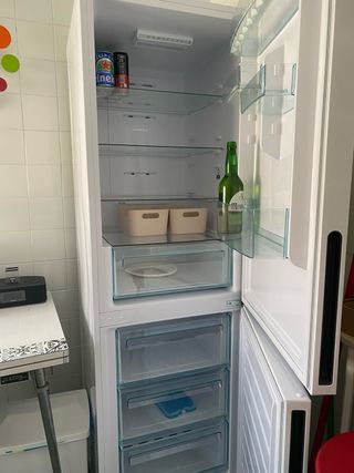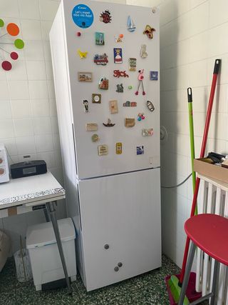 Frigorífico combi Candy en color blanco. Un electrodoméstico funcional para tu cocina. Tiene dos años, y solo ha estado enchufado durante dos veranos. - Diseño moderno y elegante. - Amplia capacidad de almacenamiento.