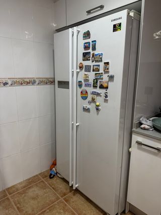 Frigorífico americano LG en buenas condiciones. Ideal para familias numerosas. - Gran capacidad de almacenamiento. - Dos puertas. - Diseño elegante y limpio. Está impecable y funciona perfectamente. Desmonte la puerta para poder sacarlo de la cocina y no he sabido montarla bien.