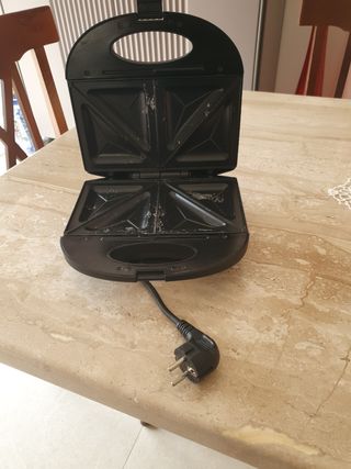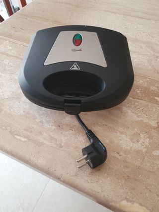 Sandwichera eléctrica Bifinett en color negro. Cuenta con luces indicadoras de encendido y lista. - Diseño compacto. - Cable de alimentación con enchufe europeo. Usado una sola vez