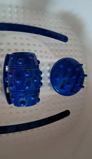 Masajeador de pies de la marca Palson, ideal para relajar y revitalizar. - Incluye dos accesorios de masaje. - Diseño blanco y azul. - Panel de control con dial. - Luz indicadora roja.