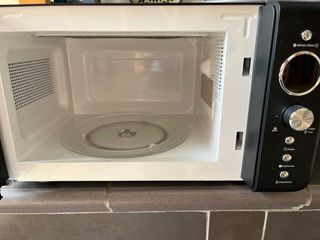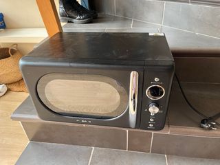 Se venden piezas de microondas CEAL. El electrodoméstico es de color negro y tiene un diseño moderno. - Puerta con ventana. - Panel de control con botones y dial. - Asa plateada.
