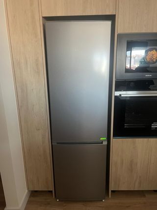 Nevera de diseño moderno, ideal para tu cocina. Aún conserva su embalaje original. - Color plateado y gris. - Acabado brillante.