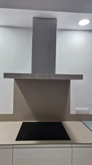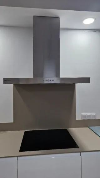 Campana extractora de la marca Mepansa, con un diseño moderno y elegante. - Acabado en acero inoxidable. - Panel de control con botones. - Diseño de pared. - Tiene 2 años y muy poco uso.