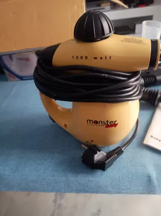Pequeño limpiador a presión de la marca Monster Cleaners, modelo Baby. Tiene una potencia de 1000 vatios. - Color amarillo. - Cable de alimentación enrollado.