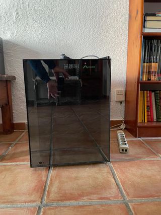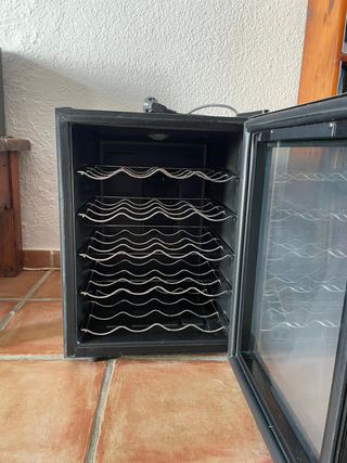 Pequeña vinoteca con puerta de cristal. - Diseño moderno y elegante. - Acabado en negro brillante.