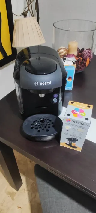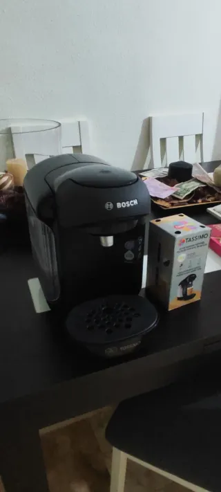 Cafetera de cápsulas Bosch Tassimo en color negro. Ideal para preparar tu café favorito. - Diseño compacto. - Bandeja extraíble para tazas de diferentes tamaños. - Depósito de agua extraíble.