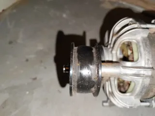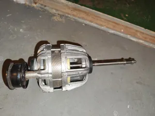 Motor de repuesto para secadora Aeg. Incluye muelle del motor aunque no se ve en la foto. A la polea tensora le falta el pasador para que no se salga. Se ha debido de caer. Tan fácil como ponerle alambre o quitarle al viejo el que tenía y ponérselo a este