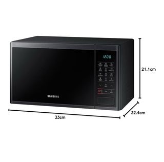 Samsung MG23J5133AG/EC - Microondas con Grill, 800 W/ 1100 W, 23 Litros, Interior Cerámica Enamel, Color Negro Grafito, 330 x 211 x 324 mm (ancho, alto, fondo) - Potencia microondas: 800w con 6 niveles; potencia de grill: 1100w - Interior de cerámica enamel: anti- bacterias, más resistente a la ralladura, decoloración y más fácil de limpiar - Función mantener caliente para conservar la temperatura de la comida ya cocinada con 2 niveles de potencia - Función descongelación, desodorización y stand by eco para reducir en 40% el consumo de energía - Display LED azul con reloj y temporizador; control táctil - Incluye rejilla para grill