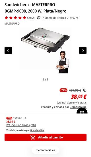 Sandwichera Schleizer modelo SLG5027-18 XL. Me costo 50 pero la dejo en 35 Sandwich bar Cocina Brasa - Potencia de 1800W. - Voltaje: 220-240V. - Frecuencia: 50-60Hz. - Diseño moderno en color plateado y negro.