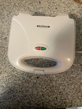Sandwichera de la marca Küken en color blanco. - Indicadores luminosos de encendido y listo. - Asa ergonómica para fácil apertura. - Diseño compacto.