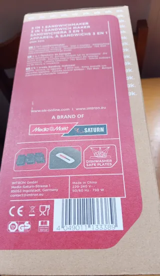 Sandwichera OK. 3 en 1 - 750W