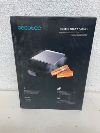 Preciosa sandwichera Cecotec Rock'nToast Family, con una potencia de 1500W. Ideal para preparar sandwiches para toda la familia. En muy buenas condiciones. - Modelo: Rock'nToast Family - Potencia: 1500W - Placas para sandwich