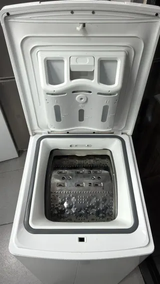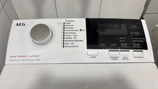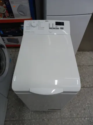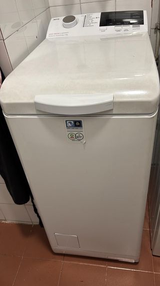 Lavadora de carga superior AEG, modelo 6000 Series Lavamat. ProSense Technology 1-7kg - Diseño blanco. - Panel de control con selector y pantalla digital. Funciona correctamente pero, es cierto que cuando centrifugas a 800 revoluciones mancha la ropa, por lo demás funciona correctamente. VIENE CON INSTRUCCIONES