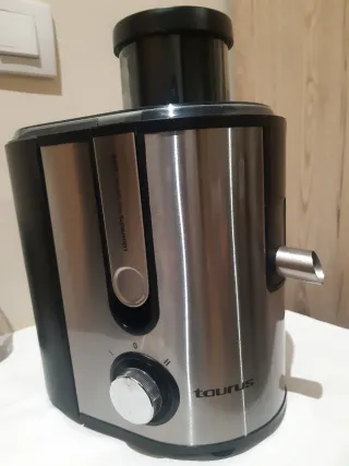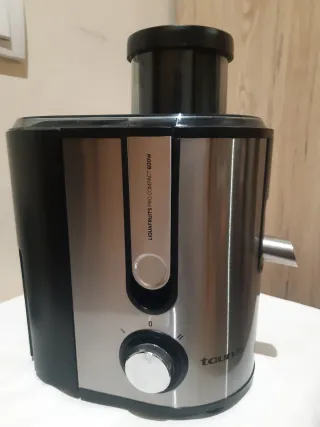 Licuadora Taurus Liquafruit Pro compact de 600W. Diseño moderno y funcional. - Cuerpo principal en acero inoxidable y plástico negro. - Apertura superior para introducir los alimentos. - Selector de velocidad con posición 0. - Caño de salida de zumo metálico.